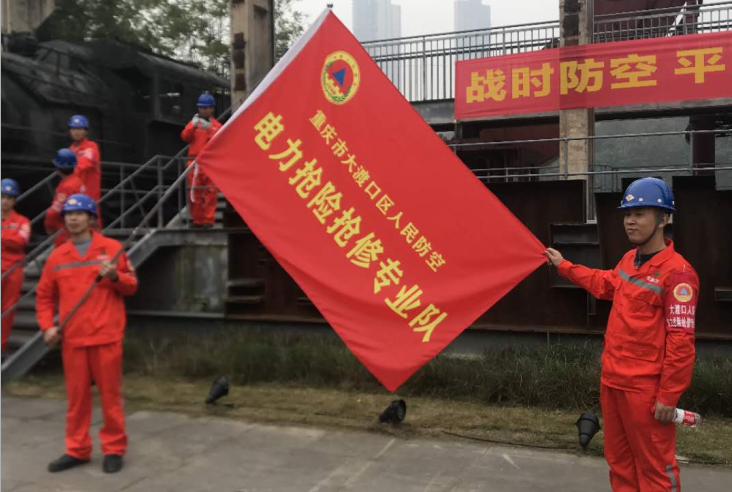 重慶大渡口區(qū)人民防空辦公室組織的大渡口區(qū)2019年人民防空專業(yè)隊伍 防空襲綜合演練:現在進入現場的是我區(qū)電力搶險搶修專業(yè)隊,這支專業(yè)隊由重慶寶翼電力設備維護有限公司組建。戰(zhàn)時該專業(yè)隊主要負責城市電力應急供應及電力中斷恢復任務,本次演練主要負責電力系統受損時的恢復工作。